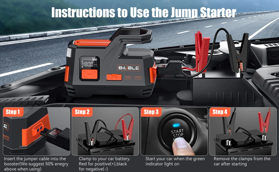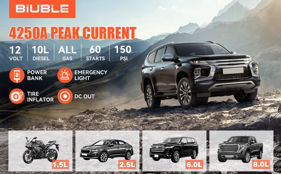 BIUBLE 26800MAH Emergency Jump Starterwith air Pump and Power Bank Emergency Lighting